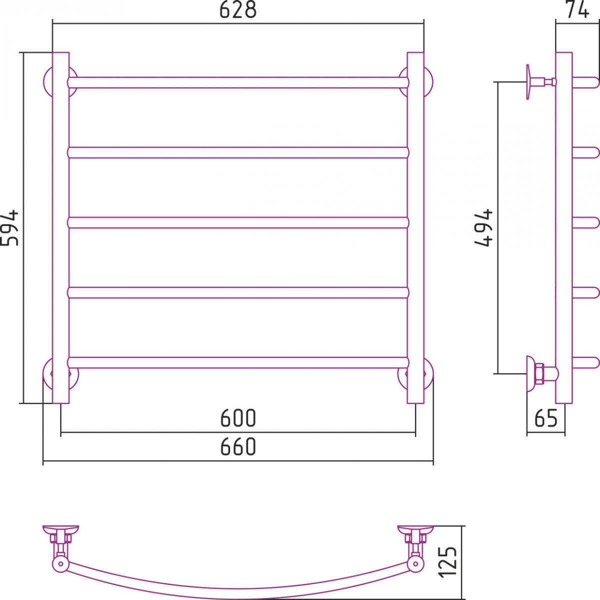 Полотенцесушитель водяной Стилье Версия-Н2 600x600